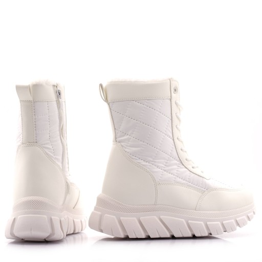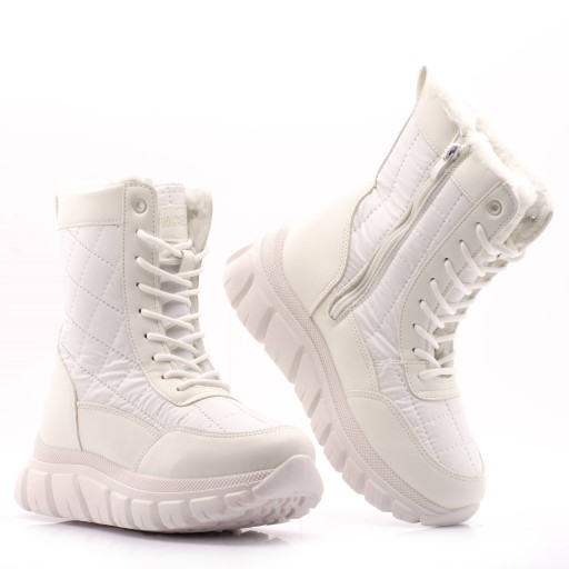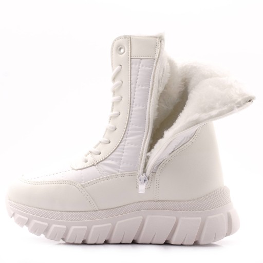 Modne śniegowce na platformie damskie marki VINCEZA. Wykonane z najwyższej jakości materiałów. Środek buta ocieplony miękkim futerkiem. Gruba podeszwa zapewnia komfort i wygodę użytkowania. Buty są zasuwane na zamek, który znajduje się z przodu cholewki. Staranne wykonanie gwarantuje maksymalny komfort użytkowania.