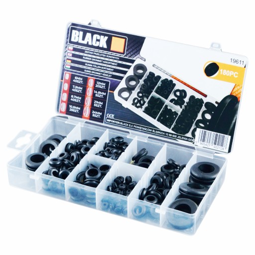 Zestaw 180szt. przelotek gumowych do otworów jest niezbędnym sprzętem dla każdego warsztatu czy garażu.