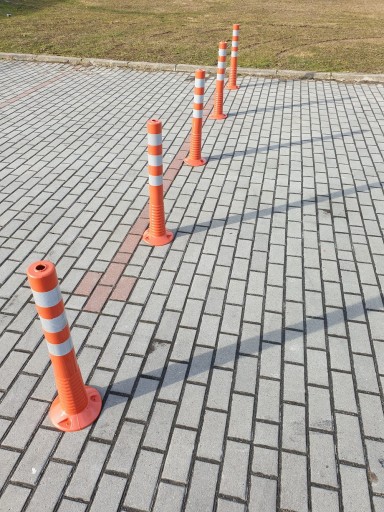 Wykonany jest z elastycznego tworzywa sztucznego w kolorze czarnym, wyklejony folią odblaskową. Warto zwrócić uwagę na łatwość przechowywania, którą charakteryzuje się każdy tego typu słupek drogowy. Cena jest jego dodatkowym atutem – to tani sposób na wyznaczenie i zabezpieczenie danego obszaru.