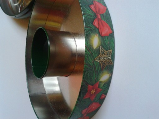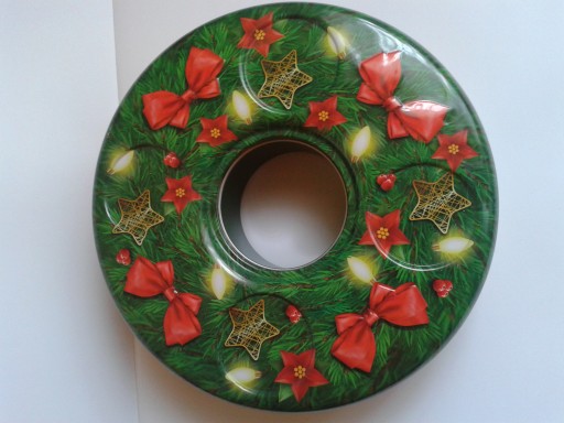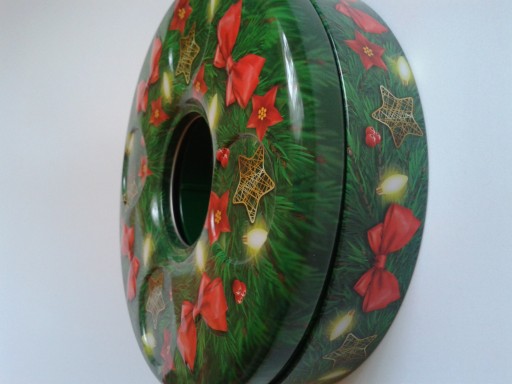 Pudełko we wzorki z dziurką. Średnica 18 cm.