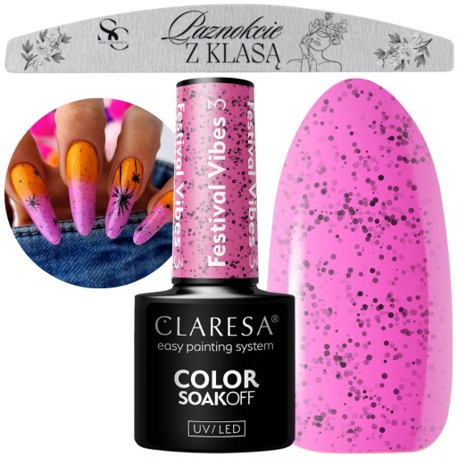 ⭐Claresa Lakier Hybrydowy FESTIVAL VIBES 3 różowy z czarną drobinką + Pilnik SEOL Pro GRATIS⭐
