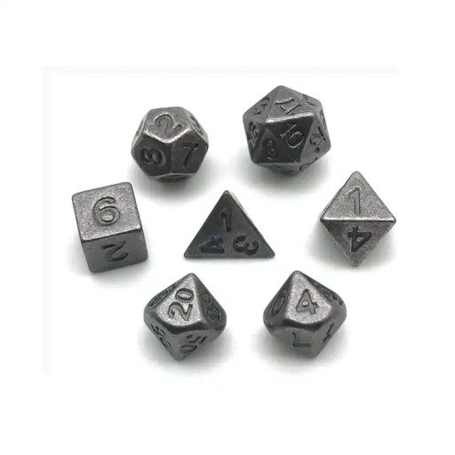 Zestaw siedmiu metalowych kości do gier fabularnych