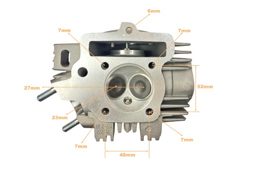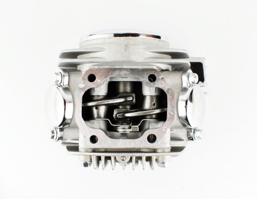 Głowica aluminiowa z kompletnymi zaworami, uszczelniaczami, sprężynami, wałkiem, dźwigniami oraz pokrywą zaworową o pojemności 125ccm, wykonana z wysokiej jakości materiałów. Idealnie nadaje się jako zamiennik oryginału jak i również sprawdzi się przy zmianie pojemności pojazdu. W głowicy została powiększona komora spalania.