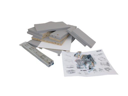 Szafka wykonana jest z trwałej płyty laminowanej o grubości 18 mm. Płyta ta charakteryzuje się trwałością i wytrzymałością.Szafka jest wykonana z grubszej płyty co czyni szafkę bardziej trwałą i stabilniejszą. Matowe wykończenie ułatwia zachowania mebla w czystości. Szafka jest oklejona PCV o grubości 0,8. Szuflady zostały wyposażone w prowadnice znanej firmy na rynku stolarskim GTV kulkowe pełny wysuw , cieszących się dobrą opinią . Szuflada otwierają się do samego końca co ułatwia nam łatwy dostęp do rzeczy schowanych w szufladzie. Z tyły zamontowane są kątowniki metalowe , które są dopiero widoczne po wyciągnięciu szuflady dlatego idealnie przylega do ściany.