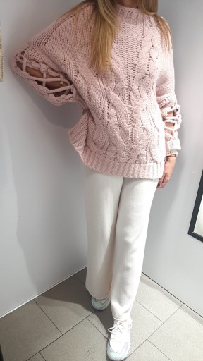 - Ten zjawiskowy sweterek w to idealna propozycja na chłodne dni. Delikatny półgolf zapewnia komfort i wygodę. Dodatkowym atutem są wiązania na rękawach.