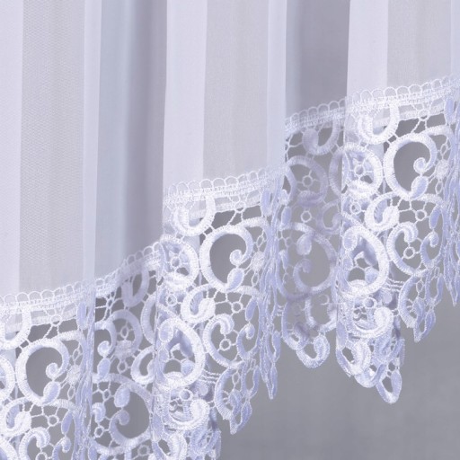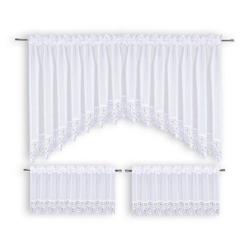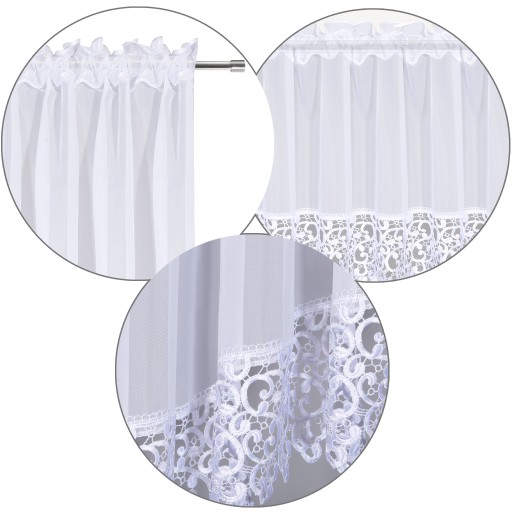 Nasza wyjątkowa firana, ozdobiona gipiurą i zazdrostkami, stanowi połączenie niezwykłej elegancji z praktycznym zastosowaniem. Jej wyjątkowy design sprawia, że pasuje doskonale do różnorodnych pomieszczeń, od kuchni po sypialnię, doskonale współgrając z różnymi stylami aranżacyjnymi. Dzięki niej każde wnętrze zyskuje unikalny charakter, emanujący luksusem i wyrafinowaniem. Dodatkowo, jej długość i szerokość można dostosować do indywidualnych potrzeb, co czyni ją niezwykle wszechstronnym elementem dekoracyjnym.
