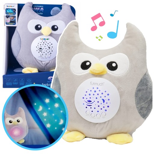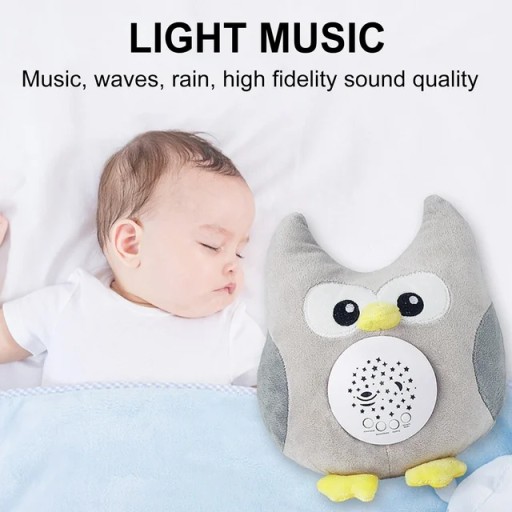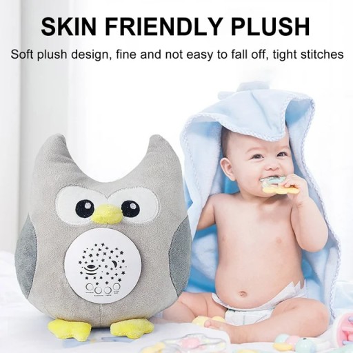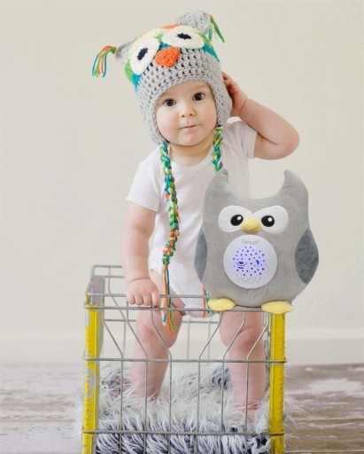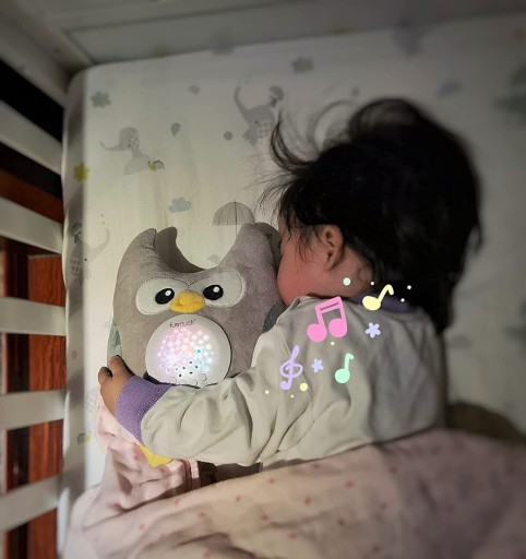 Wbudowana lampka projektor rozświetla ciemności, kojącym blaskiem wyświetlając nocne niebo. Sówka czuwa nad naszym dzieckiem.