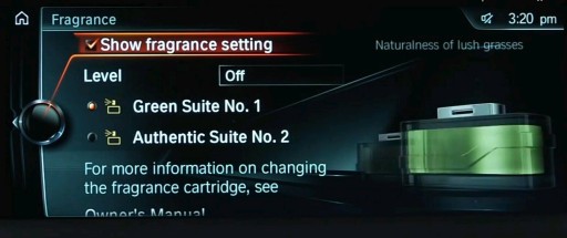 System zapachów BMW Ambient Air pozwala na wybranie jednego z dwóch zapachów w aucie oraz jego intensywności. Do poprawnego działania systemu potrzebne są dwie sztuki wkładów zapachowych. Zalecane jest posiadanie dwóch różnych wkładów w swoim systemie.