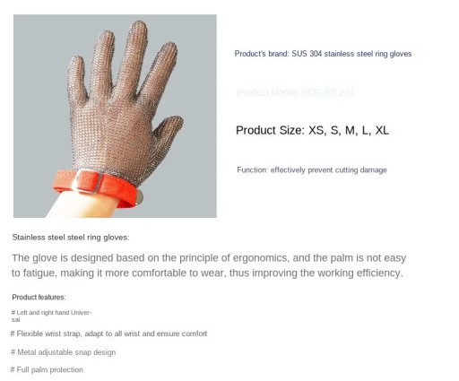 Перчатки для резки стальной проволоки с кольцом из нержавеющей стали 304