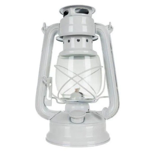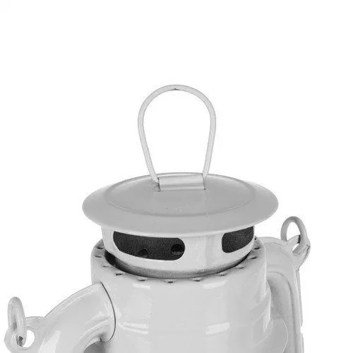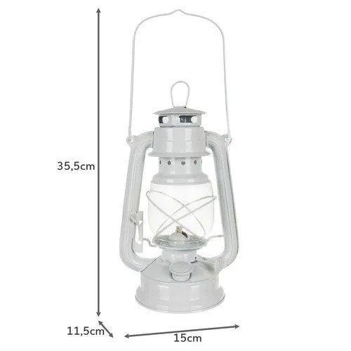 Lampion latarenka nafta olej 24cm biały metal zabezpiecz brak prądu