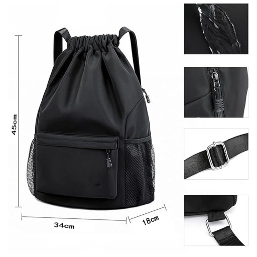 🎒Z 6 kieszeniami: 1 główna kieszeń na duże przedmioty, takie jak koszykówka, ubrania, książki, iPad, 1 wewnętrzna kieszeń na telefon komórkowy, klucze, 1 przednia kieszeń na ręczniki, 2 boczne kieszenie na butelkę i parasol, 1 tylna z zabezpieczeniem przed kradzieżą kieszeń na portfel, kartę i gotówkę.
