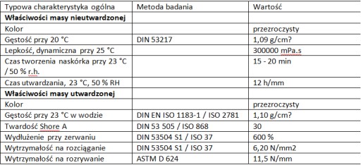 Połprzezroczysty, jednoskładnikowy klej silikonowy o konsystencji gęstej, samopoziomującej masy i dobrych własnościach mechanicznych. Klej utwardza się w temperaturze pokojowej od wilgotności powietrza i tworzy elastyczną spoinę o bardzo dobrych właściwościach mechanicznych. Kwasowy system utwardzania.