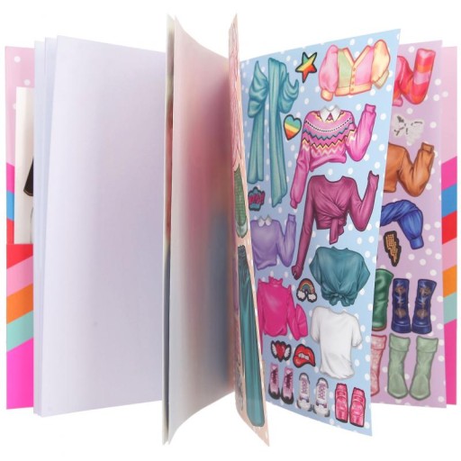 Kolorowanka Dress Me Up Big Top Model z naklejkami, w środku24 strony do kolorowania i naklejania naklejek, 7 stron z naklejkami
