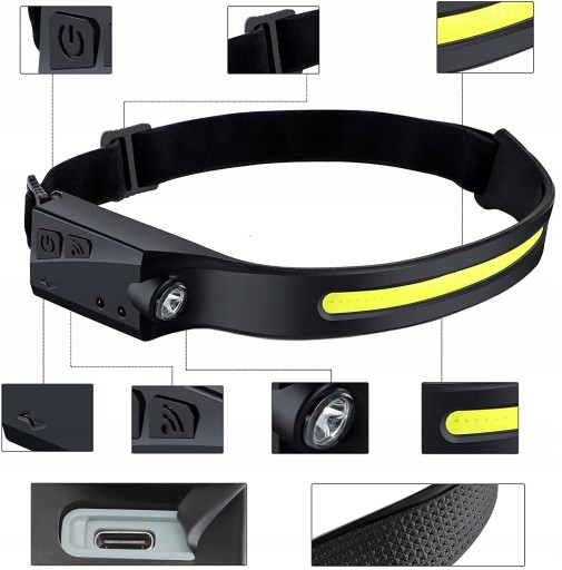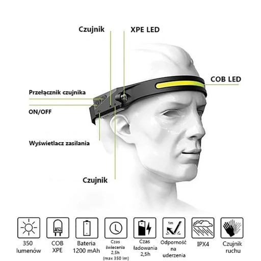 ✅ CZUJNIK RUCHU – uruchamianie gestem - to innowacyjne rozwiązanie sprawdza się znakomicie, kiedy chcemy włączyć bądź też wyłączyć czołówkę bez konieczności przyciskania włącznika, wystarczy machnąć ręką obok czujnika aby włączyć lub wyłączyć oświetlenie.