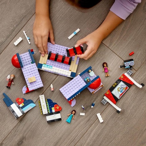 Zabierz dzieci na premierę filmu i zafunduj pełną blichtru wizytę na czerwonym dywanie z zestawem LEGO® Friends Kino w Heartlake City (41448). W pudełku znajdziesz model kina w stylu art deco z wieloma realistycznymi elementami — jest tam strefa dla VIP-ów, kiosk z popcornem i kubki z mrożonymi napojami.