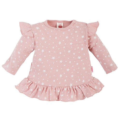 Tunika w kolorze pudrowego różu ładnie współgra z ubrankami z kolekcji Stars właśnie w tym kolorze, co pozwala na swobodne łączenie ich w spójne zestawy. Oprócz tego uniwersalna tunika sprawdza się w każdej wyprawce dla noworodka.