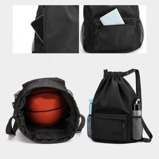 🥎 【Duża pojemność】: Wodoodporna torba sportowa ma 6 kieszeni: 1 główna kieszeń na duże przedmioty, takie jak piłki do koszykówki, ubrania, książki, iPad, 1 wewnętrzna kieszeń na telefony komórkowe, klucze, 1 przednia kieszeń na ręcznik, 2 boczne kieszenie na butelki i parasol , 1 kieszeń antystatyczna, tylna kieszeń antykradzieżowa na portfel, karty i gotówkę