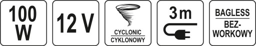 ODKURZACZ SAMOCHODOWY 12V 100W Z TURBOSZCZOTKĄ STHOR