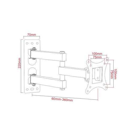 Uchwyt jest przeznaczony do montażu na ścianie, a regulowana odległość od ściany wynosząca 6-36 cm pozwala na dostosowanie ustawienia do indywidualnych preferencji.