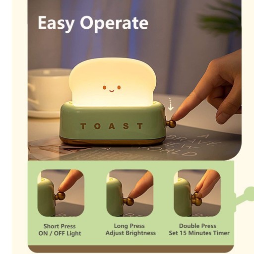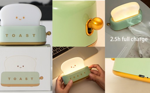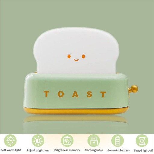 🍞Unikalny design tostera 🍞 -- Ta lampa stołowa Kawaii została zaprojektowana w kształcie tostera, który charakteryzuje się modnym stylem retro. Kojące światło działa dobrze jako lampka nocna, lampka do karmienia, lampa stołowa i lampa otoczenia i naturalnie wtapia się w meble i wystrój.
