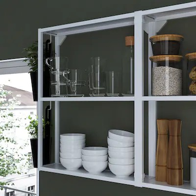 - Wkład do wiszącej półki ENHET pozwala stworzyć miejsce do przechowywania między półkami w otwartych szafkach ENHET. Idealny do organizowania rzeczy takich jak filiżanki do espresso i słoiki.
