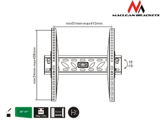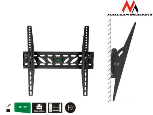 Uchwyt do telewizora Maclean MC-579 to wysokiej jakości płaski uchwyt ścienny do telewizorów i ekranów LCD/LED o przekątnej z zakresu od 26 do 47 cali. Dzięki płaskiej konstrukcji uchwyt do TV pozwala na zawieszenie telewizora lub monitora w odległości zaledwie kilku centymetrów od ściany. Maksymalny ciężar telewizora 50 kg.