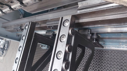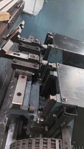 1 właściciel cena netto,-Nacisk 320 ton, długość gięcia 4 mb, Prześwit D630 mm, wysokość stołu F 900 mm, skok C 365 mm, wysięg E 410 mm, sterowanie CNC osie Z1,Z2,X1,X2,R1,R2 ,klimatyzowana szafa elektryczna , X Axis =1000mm,