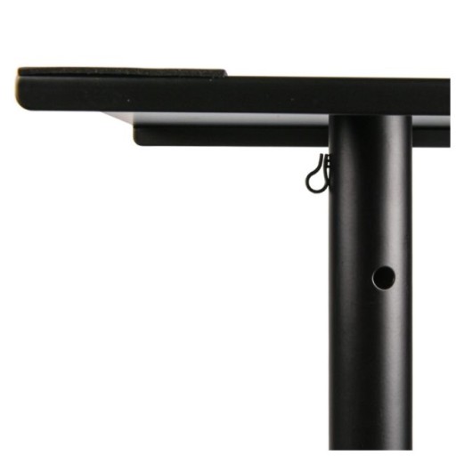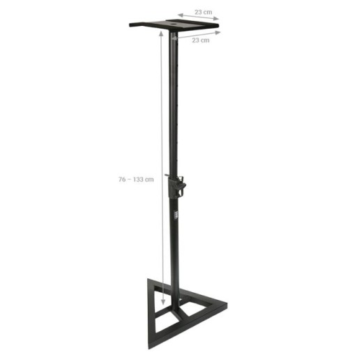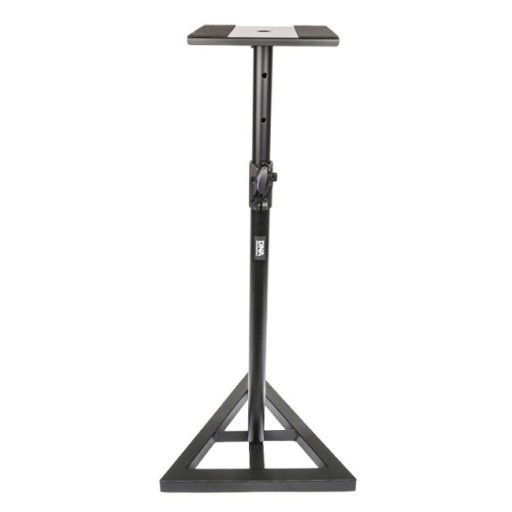DNA MON 1 to zestaw dwóch solidnych, profesjonalnych statywów pod monitory studyjne. Stojaki w całości wykonane zostały ze stali pomalowanej proszkowo na kolor czarny. Dolna podstawa każdego z nich ma kształt trójkąta równobocznego. Posiada dokręcane, antypoślizgowe nóżki umożliwiające wypoziomowanie całego statywu. W zestawie znajdują się także kolce, które świetnie sprawdzają się na wykładzinowych powierzchniach. Górna podstawa pod odsłuch ma kształt kwadratu. Dwa doklejane do niej antypoślizgowe pasy eliminują wszelkie drgania rezonansowe powstające podczas pracy głośnika i skutecznie utrzymują kolumnę na miejscu. Stojak, oprócz poziomu minimalnego, posiada pięciopunktową regulację wysokości. Rozsuwa się na maksymalną wysokość 133 cm, a trzpieniowe zabezpieczenie sprawia, że jest w stanie utrzymać nawet cięższe kolumny. Dodatkowo sztyca wyposażona została w dwa zaczepy umożliwiające wygodne i estetyczne poprowadzenie w nich przewodów. Wszystko to sprawia, że każdy ze statywów pod odsłuchy MON 1 to wygodna, przemyślana i solidna konstrukcja, która doskonale sprawdza się w profesjonalnym oraz domowym studio nagrań