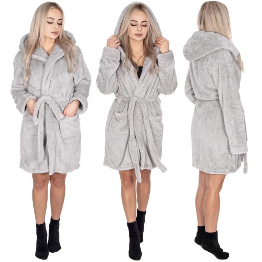 ХАЛАТ ЖЕНСКИЙ ТЕПЛЫЙ С КАПЮШОНОМ R.L/XL, ЗАВЯЗЫВАЕМЫЙ НА ТАЛИИ, ТОЛСТЫЙ, ДЛИННЫЙ, МЯГКИЙ