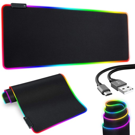 DUŻA GAMINGOWA PODKŁADKA POD MYSZKĘ RGB XXL PODŚWIETLANA MATA NA BIURKO PC