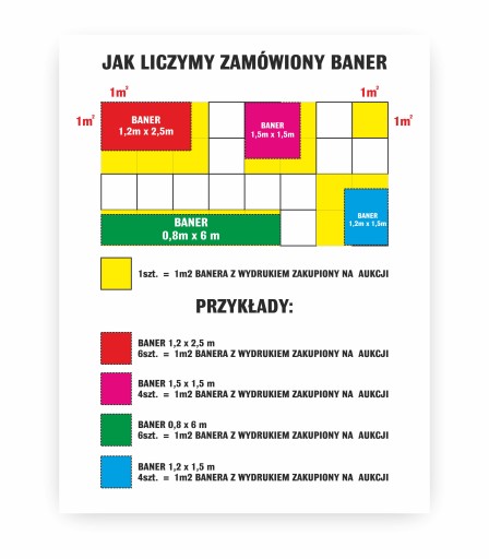 ▶️ BANER MNIEJSZY NIŻ 1m2 (np. 0,4 x 0,5m) są liczone jako 1m2 czyli 1m x 1m