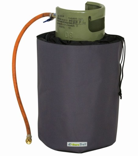 Osłona przeznaczona wielkością i kształtem do butli gazowych 5kg. Zapewnia większe bezpieczeństwo użytkowania butli gazowej w kamperze czy przyczepie. Chroni przed czynnikami zewnętrznymi dzięki czemu zwiększa się jej żywotność. Mata wykonana z wysokiej jakości poliestru odpornego na uszkodzenia. Torba ochronna pokrywa butlę od dołu aż do kołnierza - jej wymiary to 23,5 x 40 cm. Pokrowiec występuje w kolorze czarnym co jej dodatkową zaletą ponieważ maskuje wszelkie zabrudzenia.