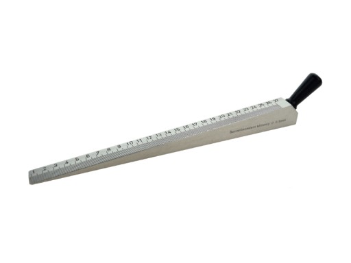 Klin pomiarowy jest przeznaczony do pomiaru szczelin oraz luzów. Wykonany z aluminium, przy zachowaniu wysokiej precyzji jest idealnym przyrządem dla budowlańców i geodetów.