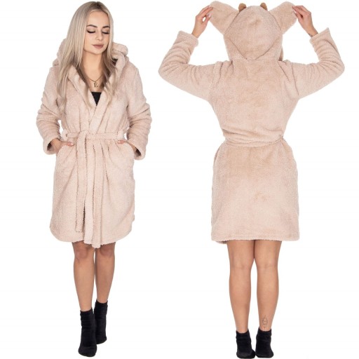 SZLAFROK DAMSKI POLAROWY BEŻOWY MIŚ CIEPŁY