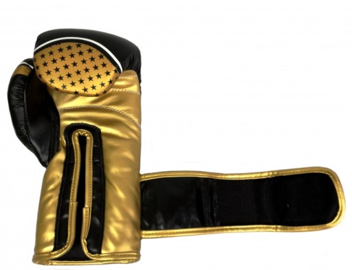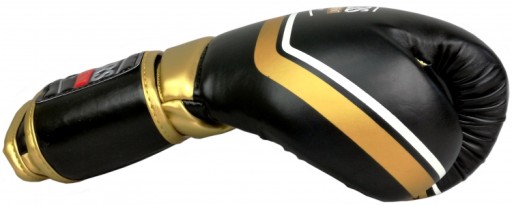 Rękawice bokserskie RPU-10 w kolorystyce czarno-złotej wykonane z wysokiej jakości skóry syntetycznej. Główny korpus rękawicy jest dwuczęściowy. Kciuk jest połączony z resztą rękawicy.