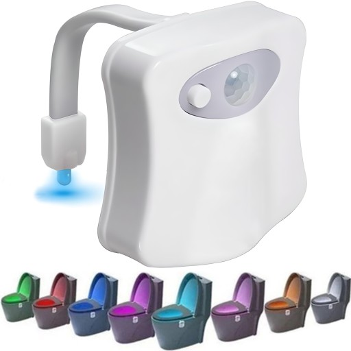 Lampka toaletowa LED to praktyczny gadżet, który sprawdzi się w każdym domu. Posiada zawieszkę, która pasuje do każdego rodzaju miski toaletowej. Lampka toaletowa posiada aż 8 kolorowe podświetlenie, które możesz zatrzymać na dowolnym kolorze lub zostawić aby zmieniała kolor w trybie automatycznym. Dzięki czujnikowi ruchu, automatycznie uruchomi się gdy tylko będziesz zbliżał się do swojej toalety.