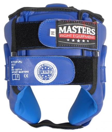 Klasyka MASTERSA, turniejowy kask KTOP-PU z zabudowaną górą głowy. Kask bokserski przeznaczony do treningu wysokich kopnięć. Posiada atest WAKO.