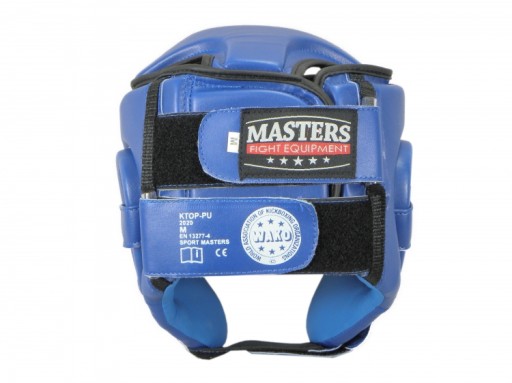 Klasyka MASTERSA, turniejowy kask KTOP-PU z zabudowaną górą głowy. Kask bokserski przeznaczony do treningu wysokich kopnięć. Posiada atest WAKO.