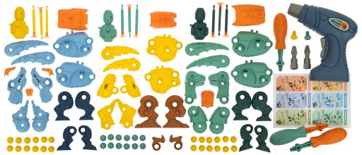 W zestawie znajduje się wkrętarka z dwoma bitami (płaskim i krzyżakowym) ułatwiająca skręcanie i rozkręcanie klocków.