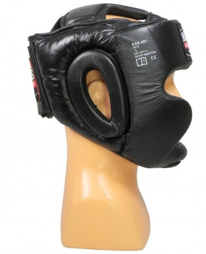 Kask sparingowy KSS-4B1 wykonany w całości z wysokiej jakości skóry bydlęcej. W pełni zabudowany z ochroną kości policzkowych, brody i górnej cześci głowy.