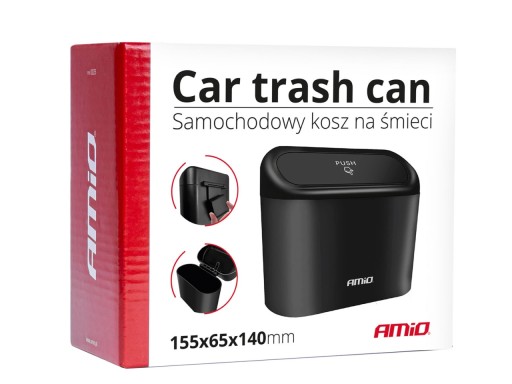 Kompaktowy kosz AMiO idealnie zadba o czystość w Twoim samochodzie. Otwiera się go jednym kliknięciem, byś zawsze mógł skupić się na jeździe. Kosz na śmieci, który można zawiesić na bocznych drzwiach samochodu lub na fotelach.