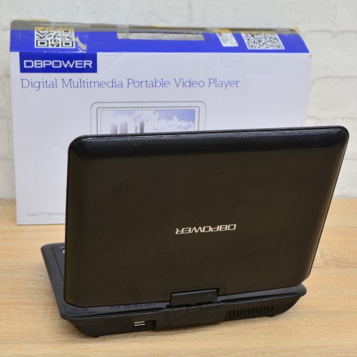 Powystawowy przenośny odtwarzacz DVD DBPOWER 9,5" z obrotowym ekranem, wbudowany akumulator wystarczający na 5 godzin, obsługa płyt CD/DVD/SD/USB, z ładowarką samochodową i zasilaczem (czarny), z kontrolerem i płytą z grami.