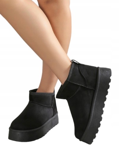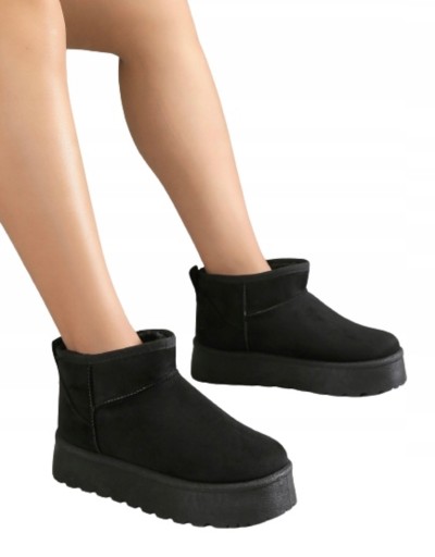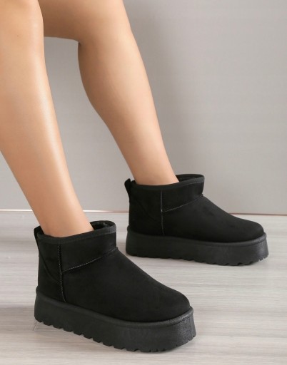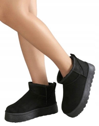 Wyjątkowe śniegowce na platformie , model ocieplany futerkiem w środku , bardzo wygodne i ciepłe . Obuwie wsuwane .