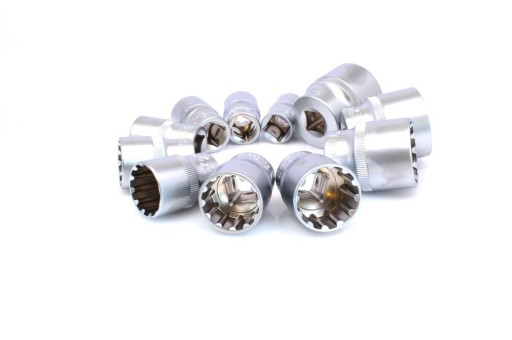 Uniwersalny zestaw nasadek 12 kąt. Vario – Plus mający podwyższoną wytrzymałość i zapobiega obracaniu się śruby w nasadce co mogło by doprowadzić do jej uszkodzenia.
