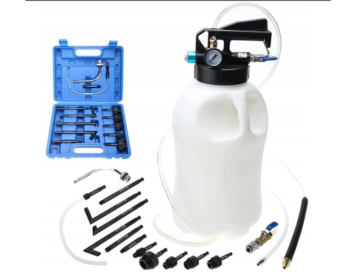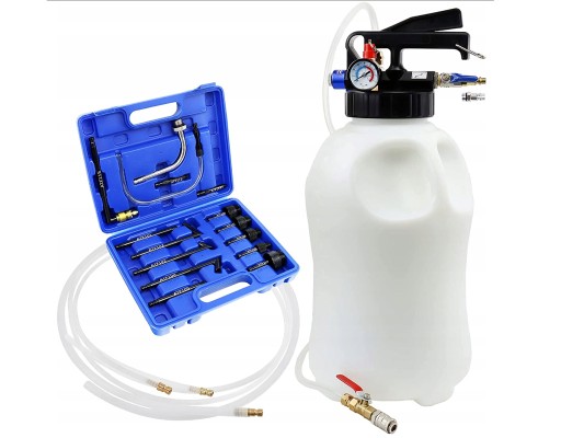 Pneumatyczna pompa ze zbiornikiem 10 litrów przystosowana do opróżniania i napełniania olejem automatycznych skrzyń biegów i mechanizmów różnicowych.