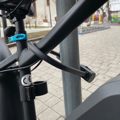 - Zalecamy przypinać rower, hulajnogę czy inny pojazd przez ramę