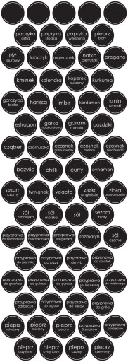 Praktyczne etykiety do zastosowania na różnego rodzaju pojemniki, w których przechowywane są przyprawy, zioła lub inne produktu spożywcze.