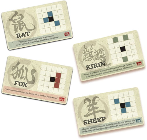 The Onitama: Sensei's Path expansion consists of sixteen new movement cards that can be shuffled together with those of the Onitama base game in order to have more variety during play.