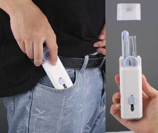 7 narzędzi do czyszczenia komputera jest starannie umieszczonych w prostokątnym pudełku. Jest wystarczająco mały do podróży i możesz go nosić przy sobie. W każdej chwili można również wyjąć dowolne urządzenia do oczyszczania osobno, takie jak SUPER lekki składany długopis czyszczący do słuchawek.