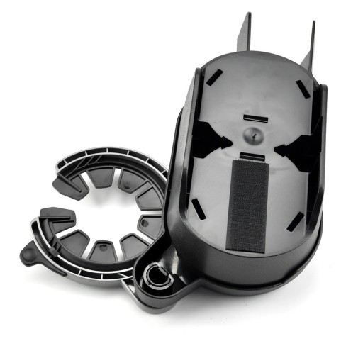 - Montaż do dolne części deski rozdzielczej oraz dodatkowo do podłogi za pomocą taśmy na rzep umiejscowionej w podstawie uchwytu